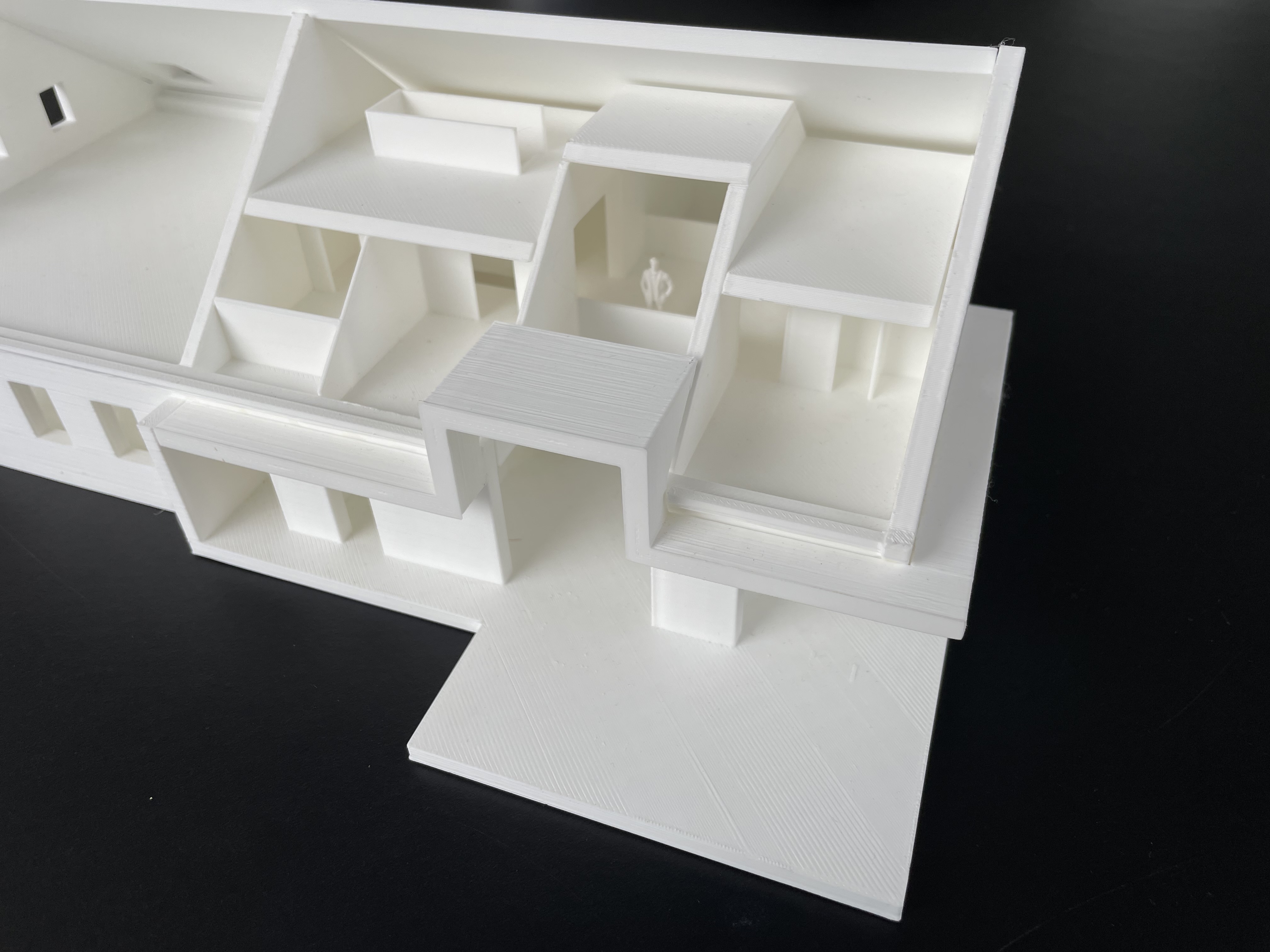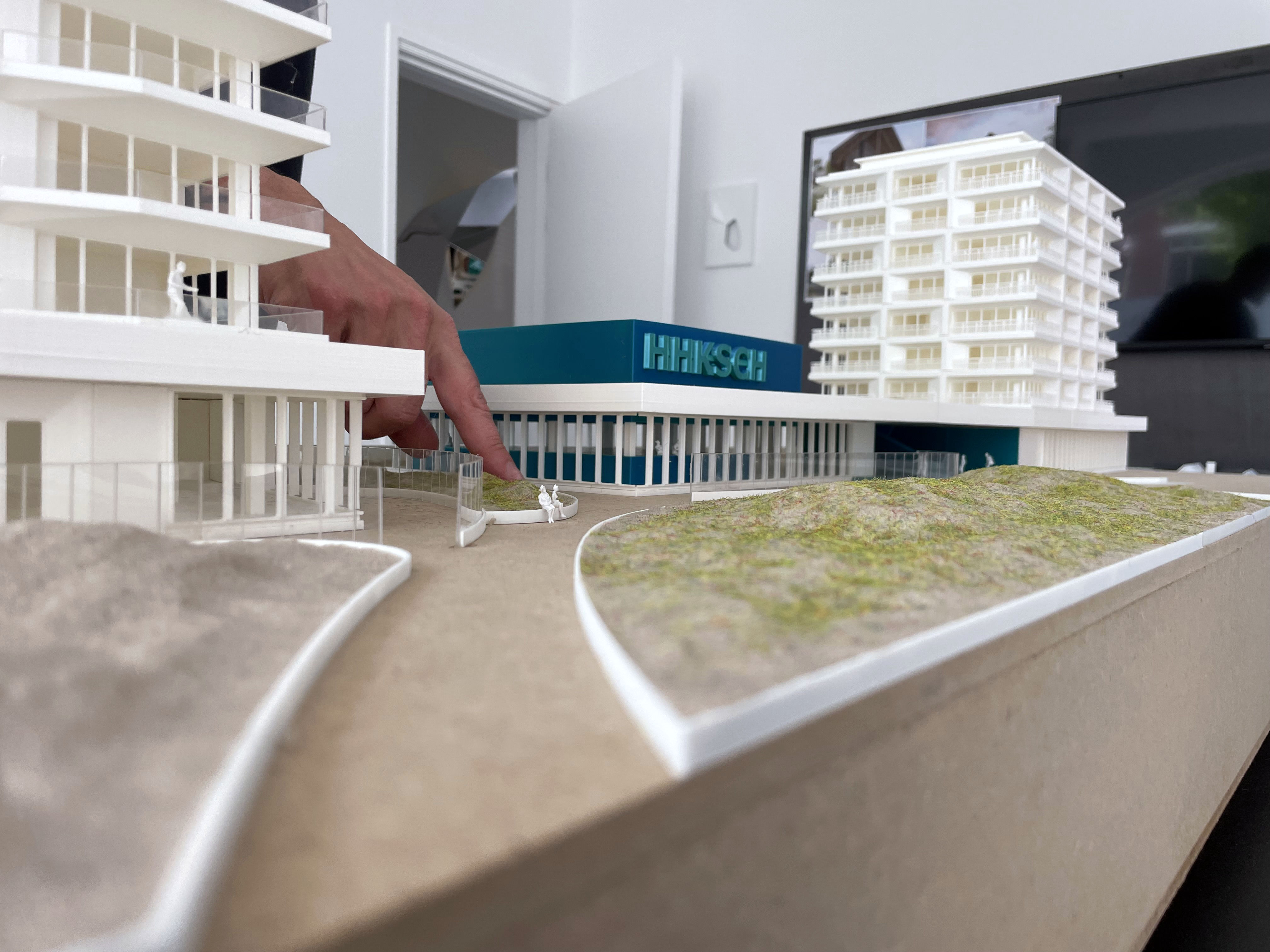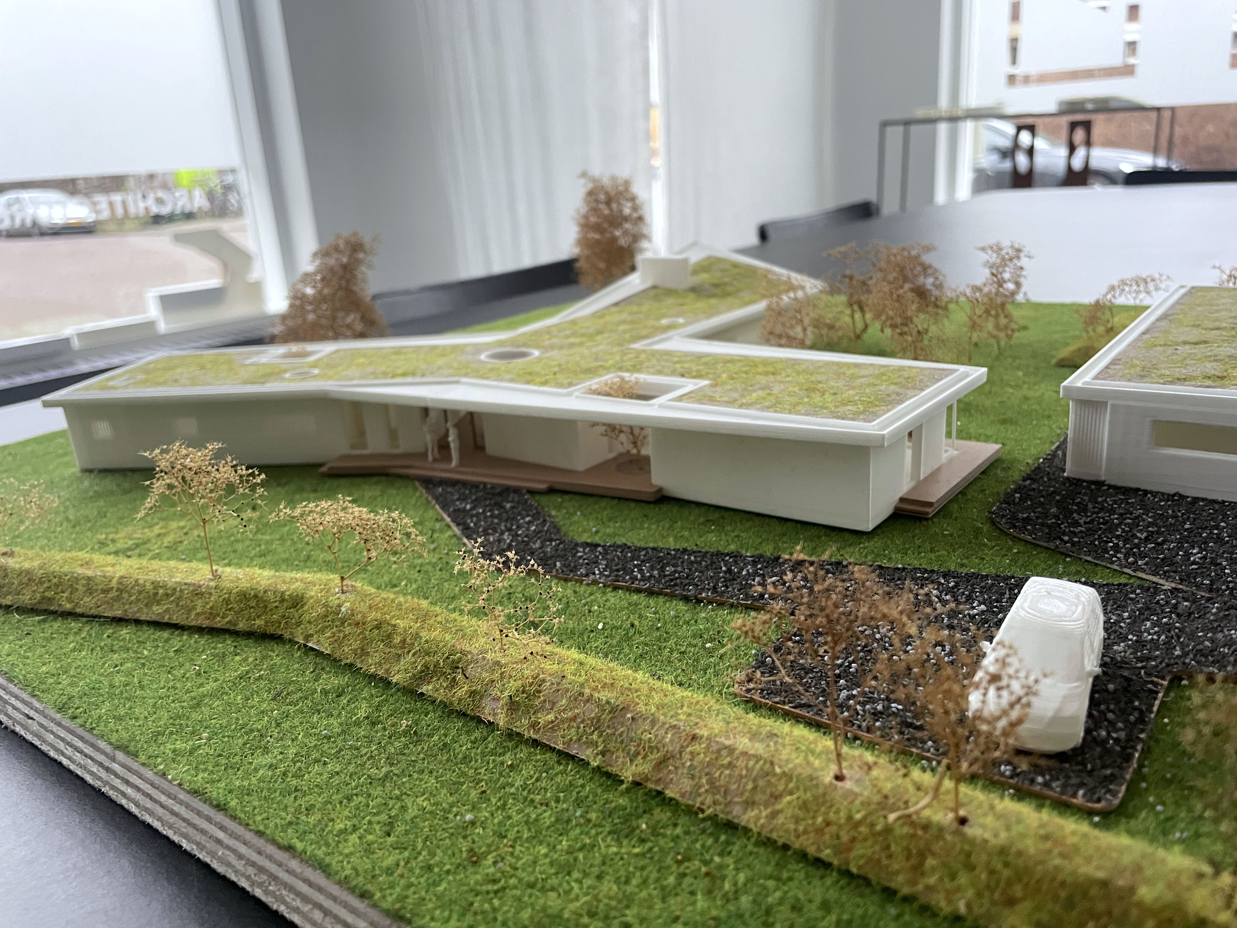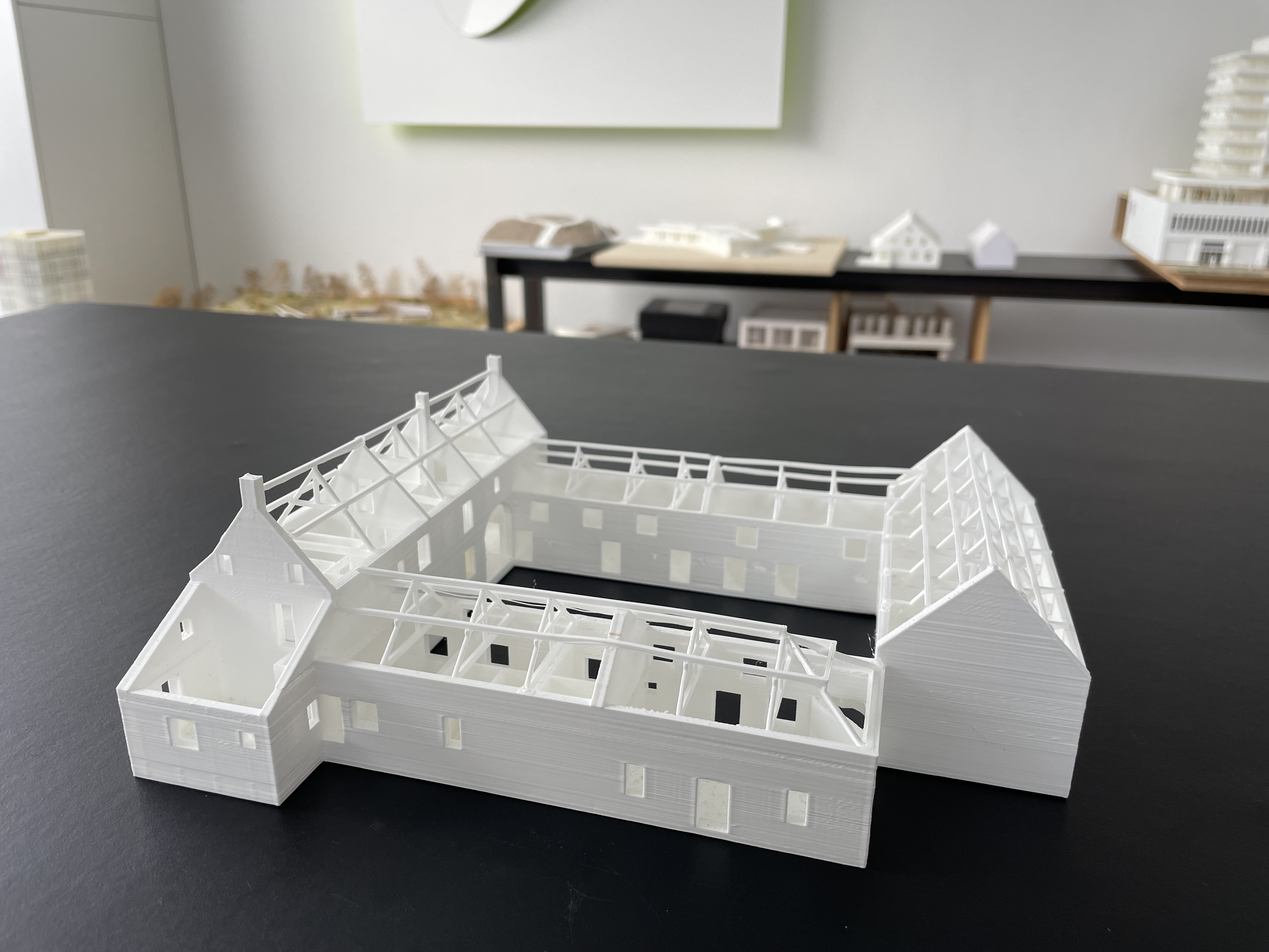 Daarnaast gebruiken we de 3D-printers ook om onze presentatiemodellen te maken. Door het 3D-printen te combineren met andere technieken, zoals computergestuurd lasersnijden, kunnen we zeer nauwkeurige en gedetailleerde maquettes maken. Natuurlijk blijft handwerk vereist—maar dat is juist het mooie van architectuur, de combinatie van techniek en esthetica.