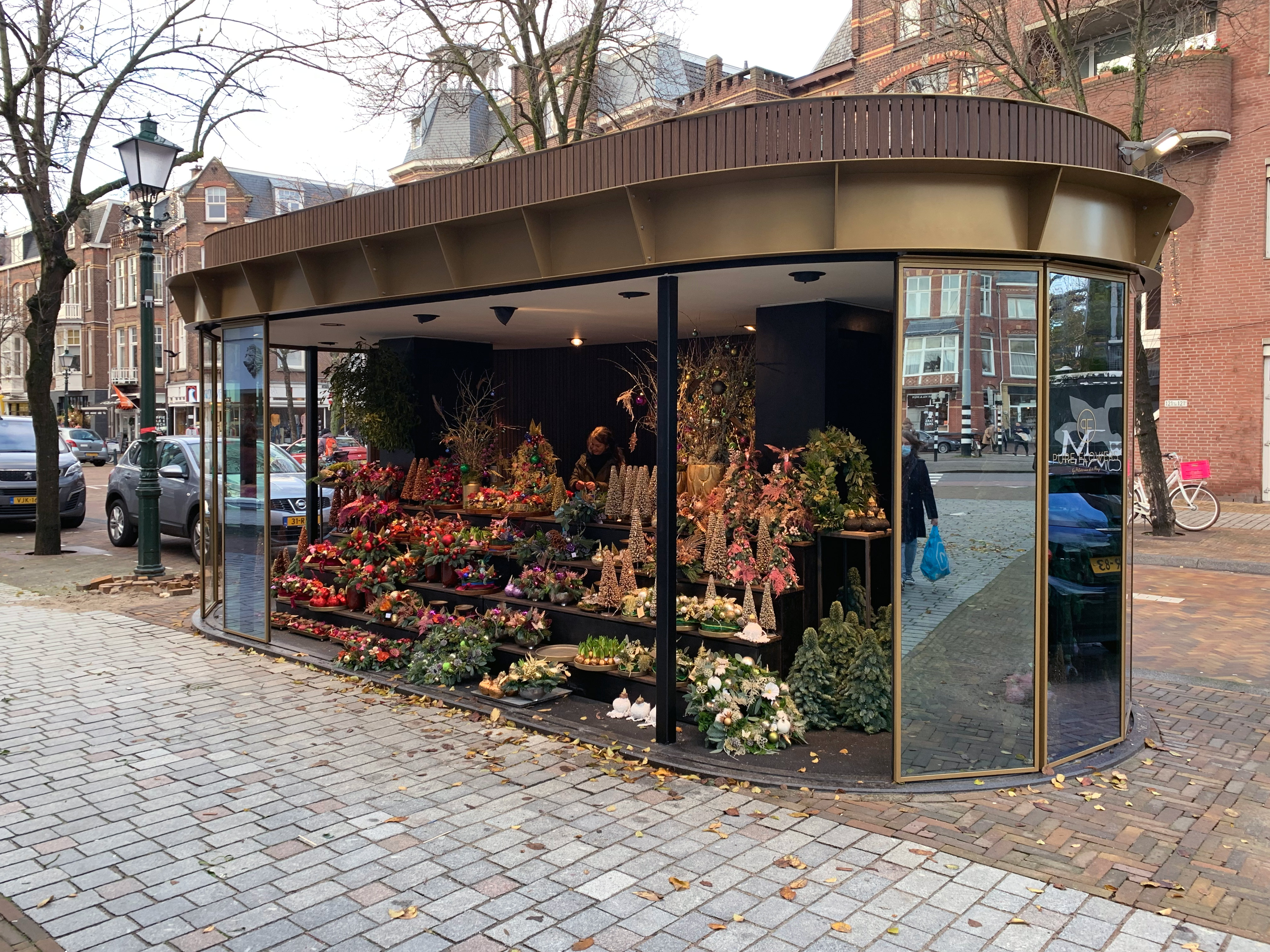 Voor M&M Pure Flowers heeft DAVL Studio een bloemenkiosk ontworpen. Deze maakt deel uit van de herinrichting van de Fredrik Hendriklaan in het Statenkwartier. De kiosk bestaat uit een stalen skelet, rondom bekleed met bamboe en glazen schuifpuien. Het concept van de kiosk is om een bijna alzijdig gebouw te maken dat flexibel gebruikt kan worden. De constructie staat los van de gevel, die bestaat uit bamboe en schuifpuien met glas. Die schuifpuien kunnen rondom het gebouw verplaatst worden—zo kan het gebouw bijna helemaal open. Aan de bovenkant wordt de kiosk beëindigd met een gepoedercoate stalen rand in metallic lak. Hierdoor blijven installaties uit het zicht en krijgt de kiosk een passende, chique kroon. DAVL Studio heeft tijdens het bouwproces de rol van directievoerder op zich genomen en de coördinatie tijdens de gehele bouwtijd verzorgd. Hierdoor konden tijdens het werk technische beslissingen worden gemaakt zonder dat de kwaliteit van de architectuur daar onder hoefde te lijden.