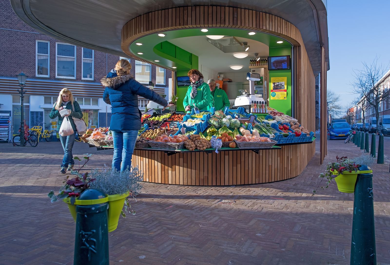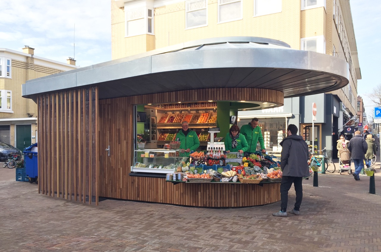 In de Fahrenheitstraat zijn onze eerste drie kiosken te vinden: Vu’s notenbar, vishandel Kleinee, en groente en fruit van Remy Otten.