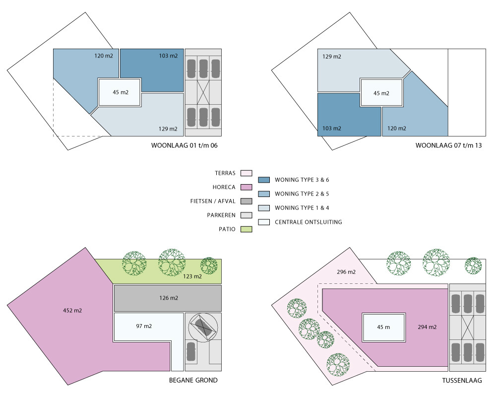 De eigenwijze oriëntatie van het volume geeft de appartementen een bijzondere brede uitzicht over zee en het havengebied. Deze beweging is tevens geïntroduceerd om ruimte te geven aan de naastgelegen luchtgebonden woning van Archipelontwerpers. De knip tussen de begane grond en de appartementen geeft het bouwvolume een zwevend karakter, hierdoor ontstaat in combinatie met een ruimtelijke architectonische uitsnede, een slanke beleving. Alle appartementen zijn vrij indeelbaar en voorzien van ruime balkons. Vier van deze appartementen beschikken over een bijzondere dakterrassen.
