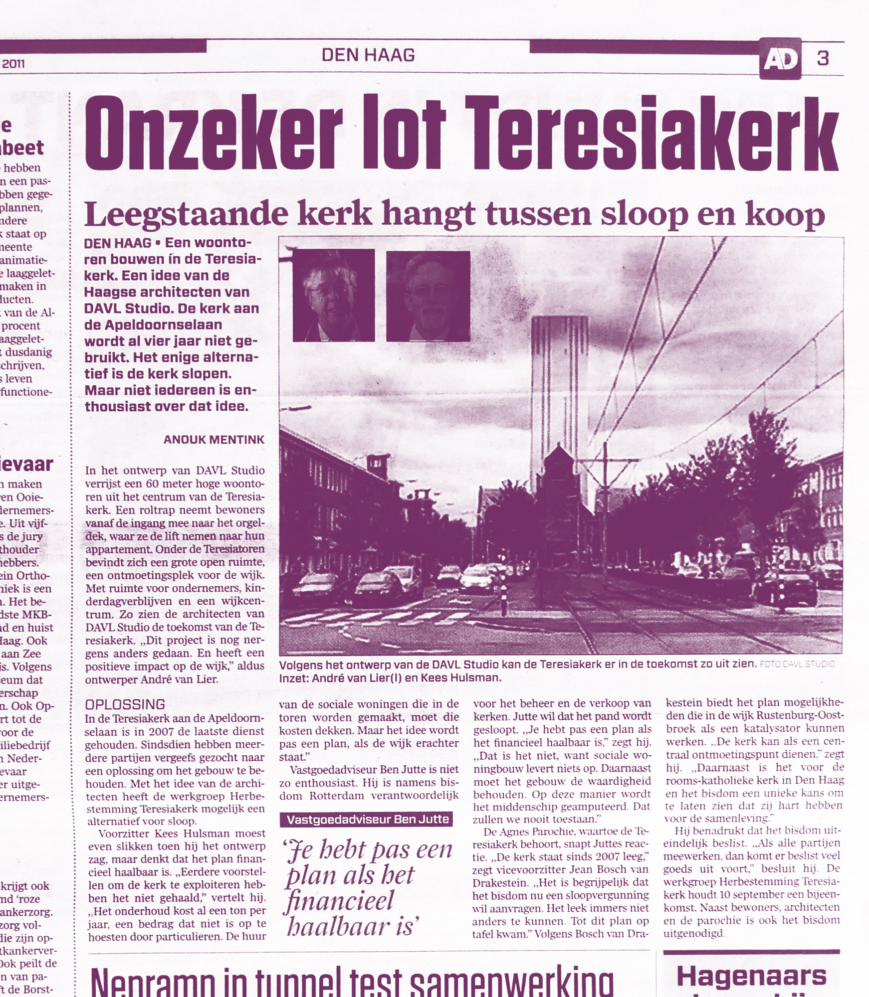 De wens van de wijk is dat de Theresiakerk in het hart van de wijk behouden blijft. Wijkbewoners hechten veel waarde aan dit markante gebouw. Belanghebbenden hebben van de gemeente Den Haag tot 15 september de tijd om met een haalbaar alternatief plan te komen waarmee het gebouw behouden kan blijven.